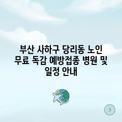 부산 사하구 당리동은 어르신들이 독감예방접종을 무료로 받을 수 있는 좋은 기회를 제공합니다. 여기에 대해 좀 더 자세히 알아보겠습니다.