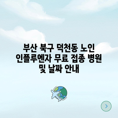 부산 북구 덕천동 노인 인플루엔자 무료 접종 병원 및 날짜 안내