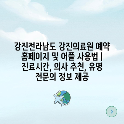 강진전라남도 강진의료원 예약 홈페이지 및 어플 사용법 | 진료시간, 의사 추천, 유명 전문의 정보 제공