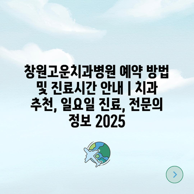 창원고운치과병원 예약 방법 및 진료시간 안내 | 치과 추천, 일요일 진료, 전문의 정보 2025