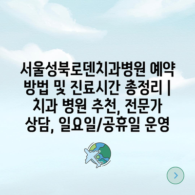 서울성북로덴치과병원 예약 방법 및 진료시간 총정리 | 치과 병원 추천, 전문가 상담, 일요일/공휴일 운영
