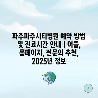 파주파주시티병원 예약 방법 및 진료시간 안내 | 어플, 홈페이지, 전문의 추천, 2025년 정보