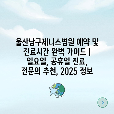 울산남구제니스병원 예약 및 진료시간 완벽 가이드 | 일요일, 공휴일 진료, 전문의 추천, 2025 정보