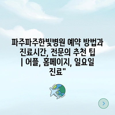 파주파주한빛병원 예약 방법과 진료시간, 전문의 추천 팁 | 어플, 홈페이지, 일요일 진료”