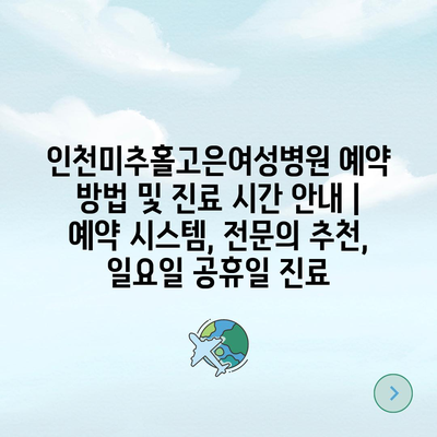 인천미추홀고은여성병원 예약 방법 및 진료 시간 안내 | 예약 시스템, 전문의 추천, 일요일 공휴일 진료